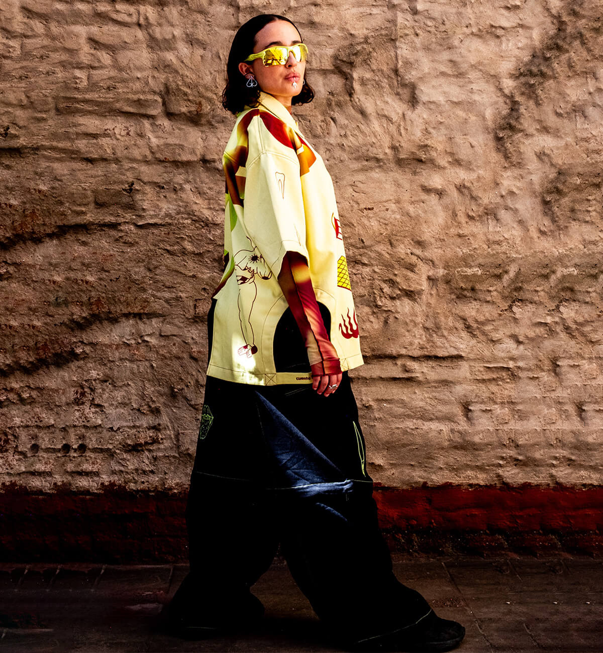 🏁 Camisa de corte asimétrico, ilustrada e impresa, formando una composición con los dibujos del universo 🩸Cc: Caníbal🩸 Con drill hecho en Brasil de 100% algodón, oversize y agender. Perfecta para un día en la ciudad, con frío o sol. También para una fiesta caníbal. 🏁