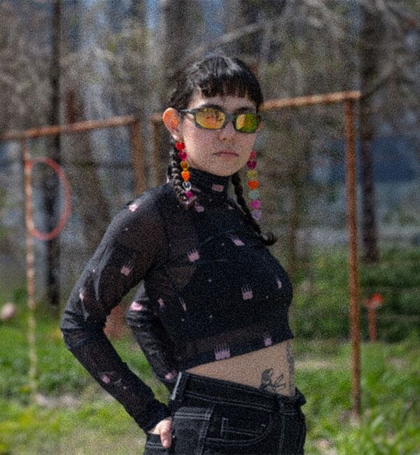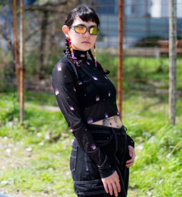 Top de malla cuello tortuga ajustado, perfecto para días soleados, paseos citadinos y fiestas llenas de color. Puedes usarlo con nuestro Chaleco fuego o la camisa rebelde.